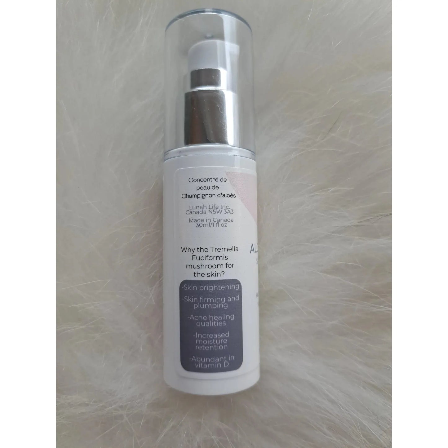Ingredients: Aloe Barbadensis Leaf Juice*, Tremella Fuciformis Extract*, Hamamelis Virginiana (Witch Hazel) Extract*, Trametes Versicolor Mushroom Extract*, Glycerin*, Sodium Alginate, Citrus Aurantium Dulcis (Orange) Peel Oil*