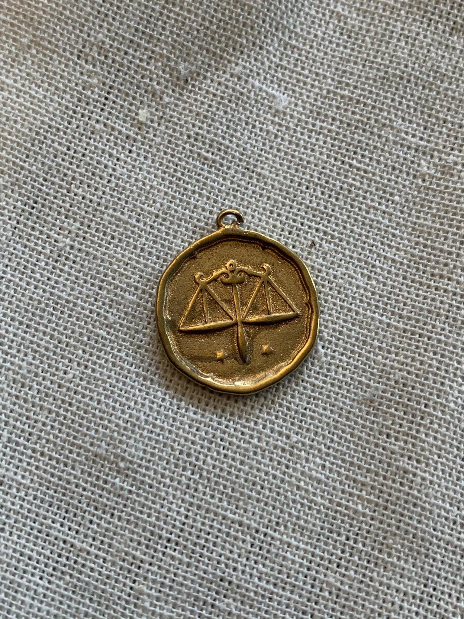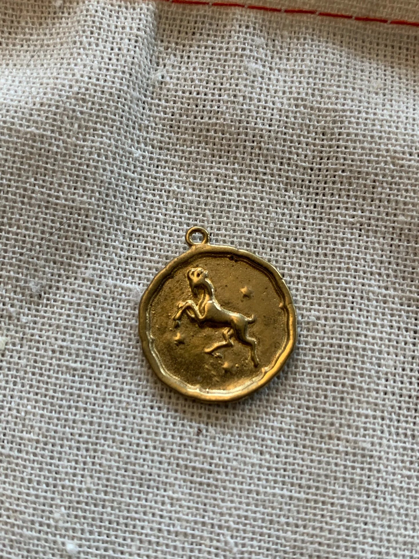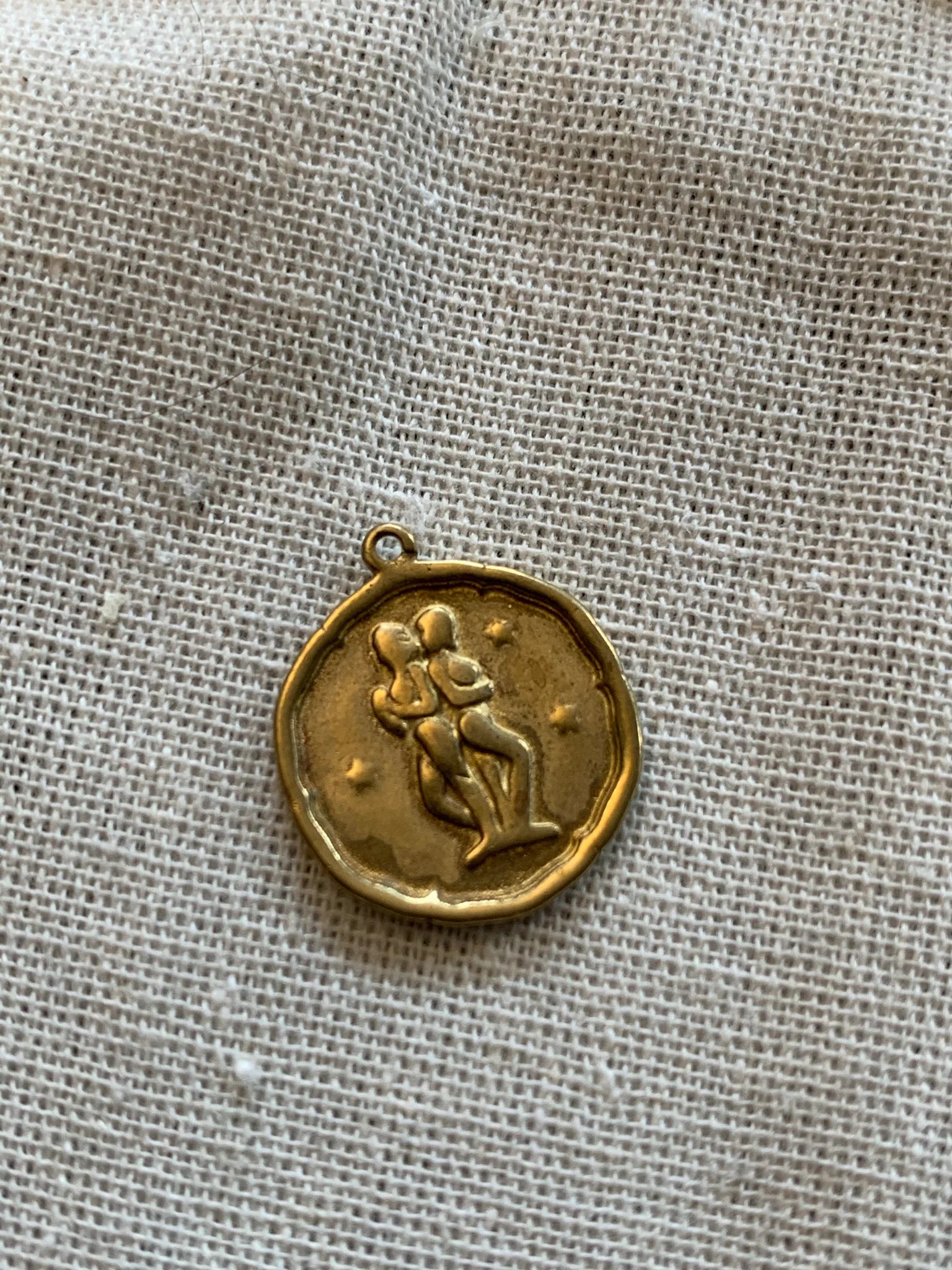 Brass pendant horoscope necklace. Chain is approx 16” long.