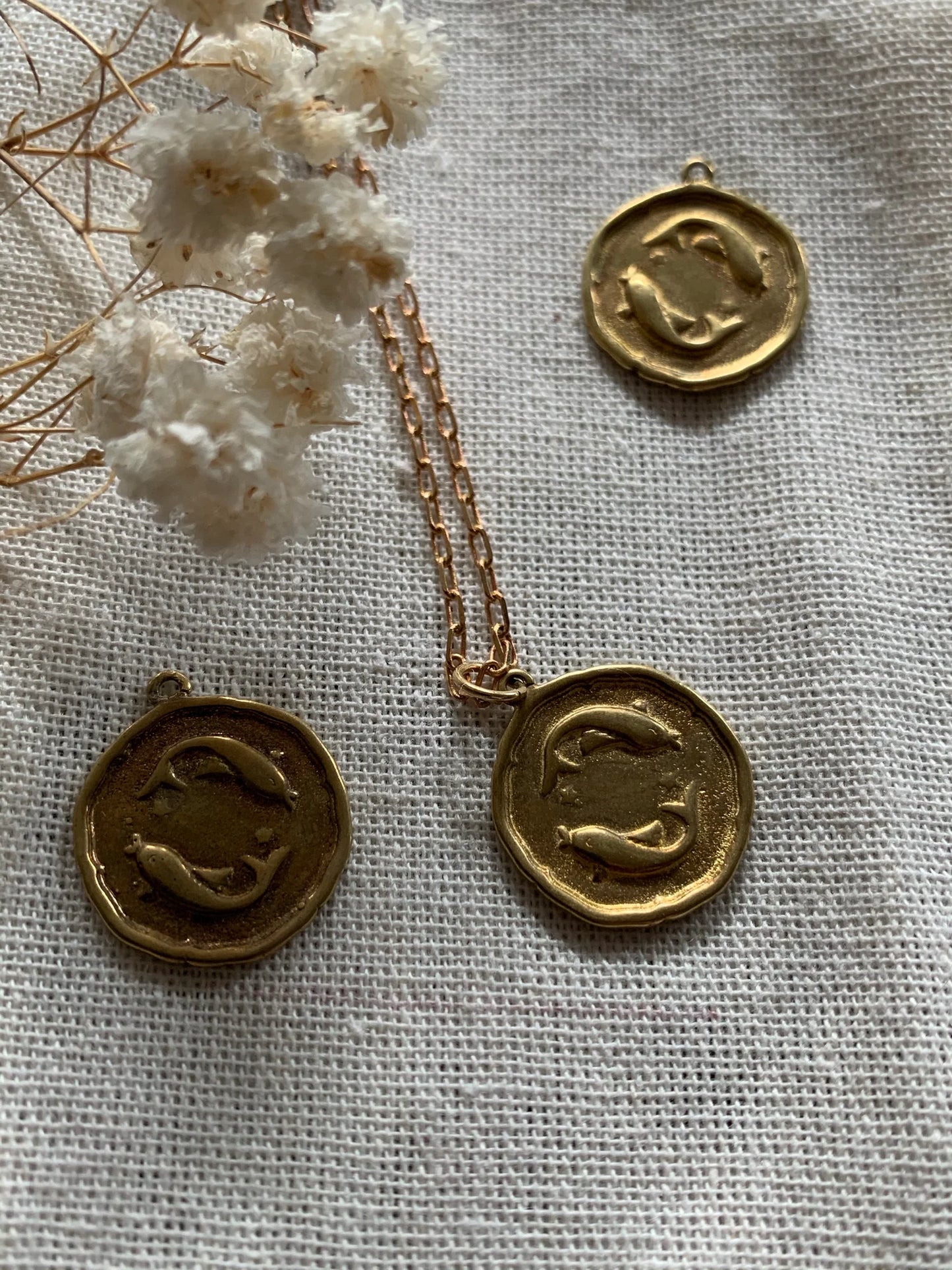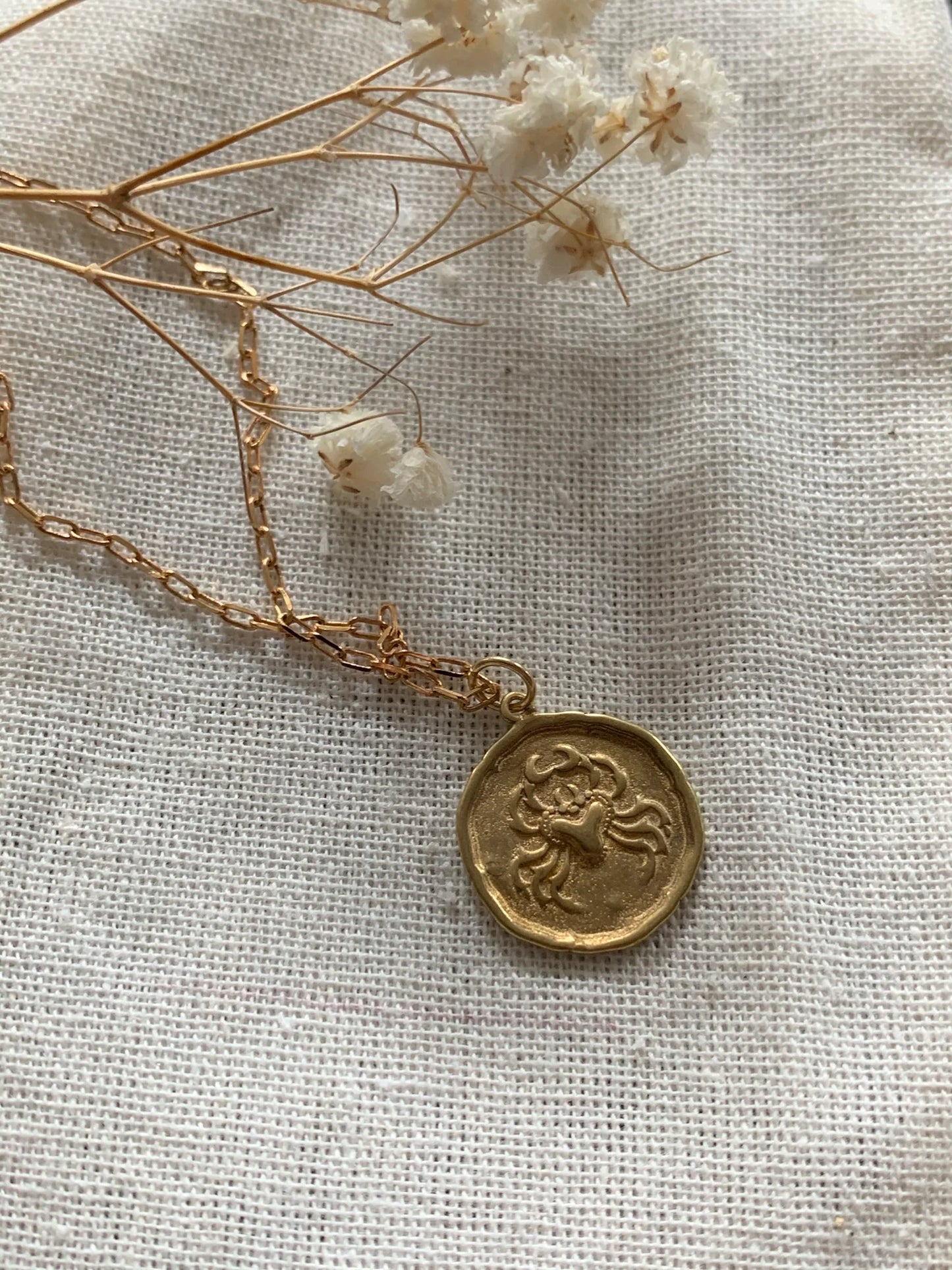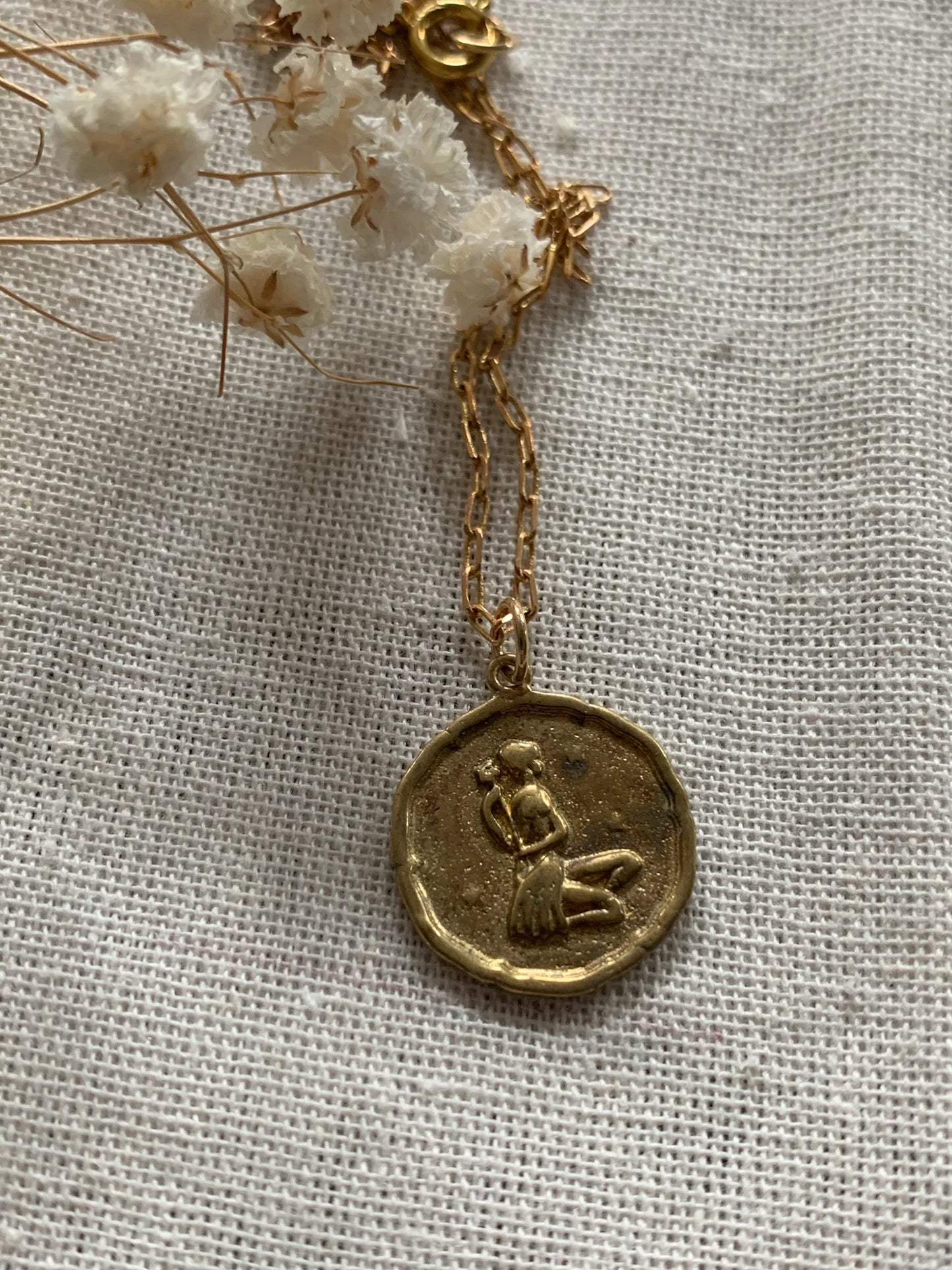 Brass pendant horoscope necklace. Chain is approx 16” long.