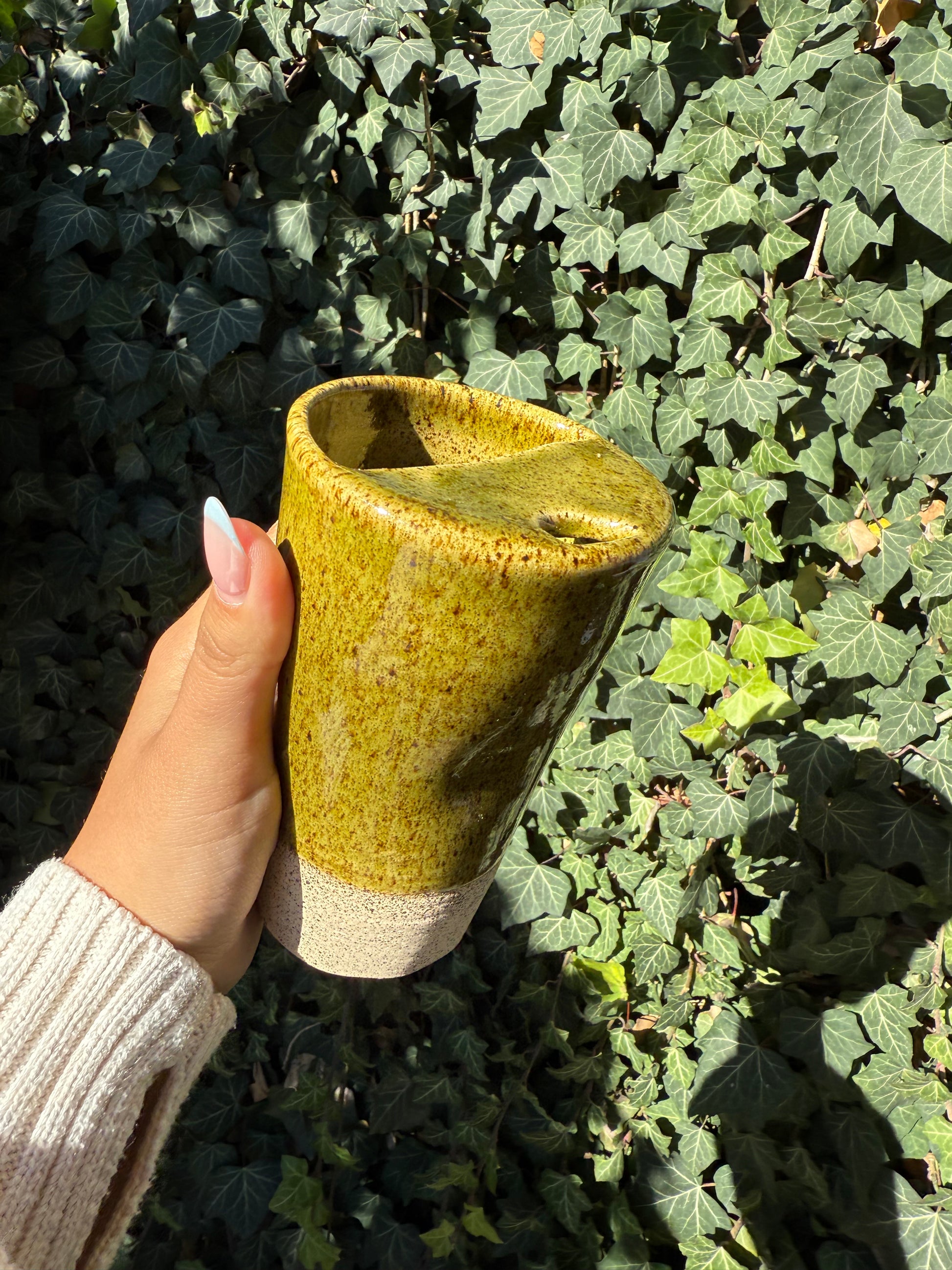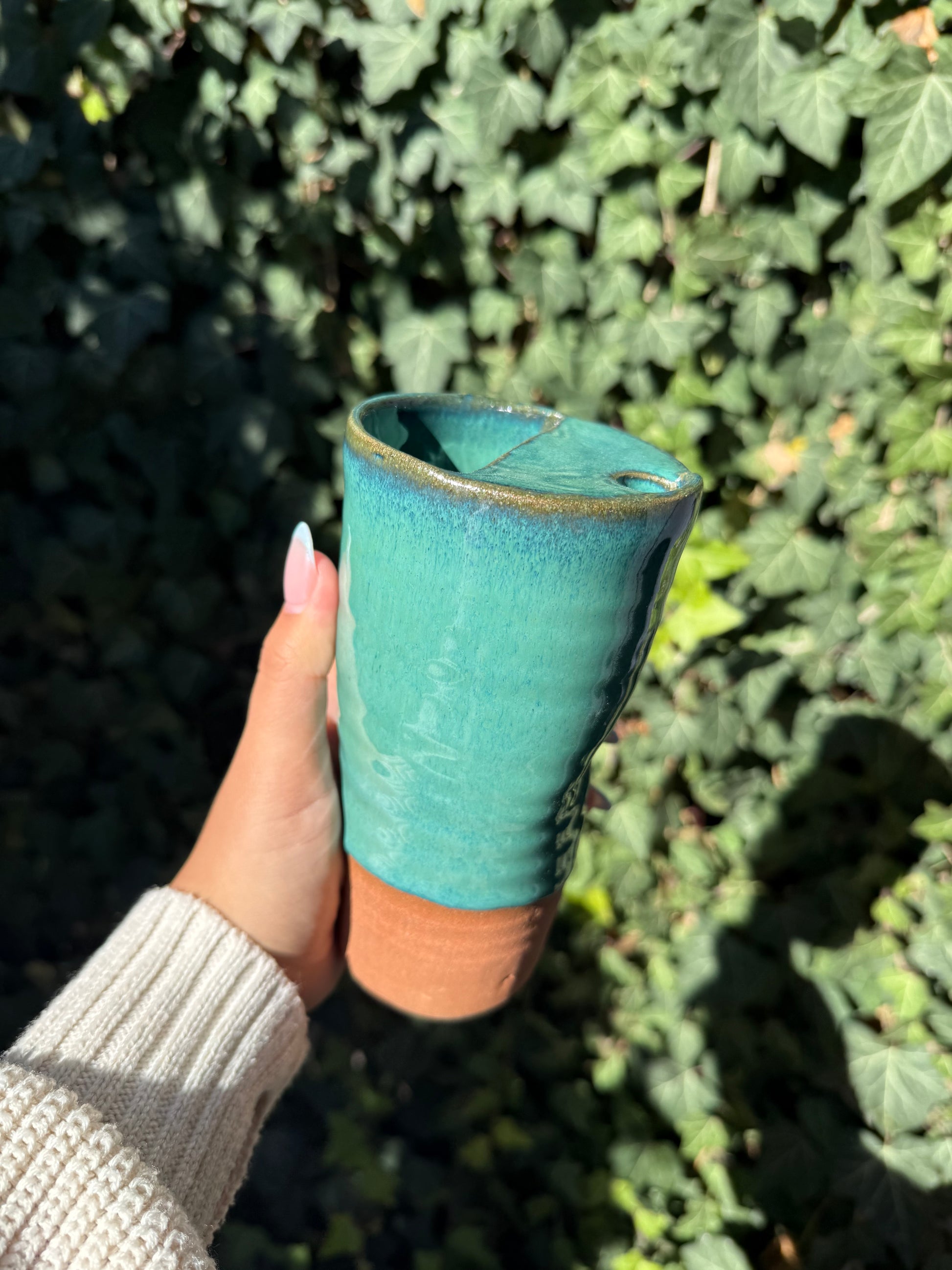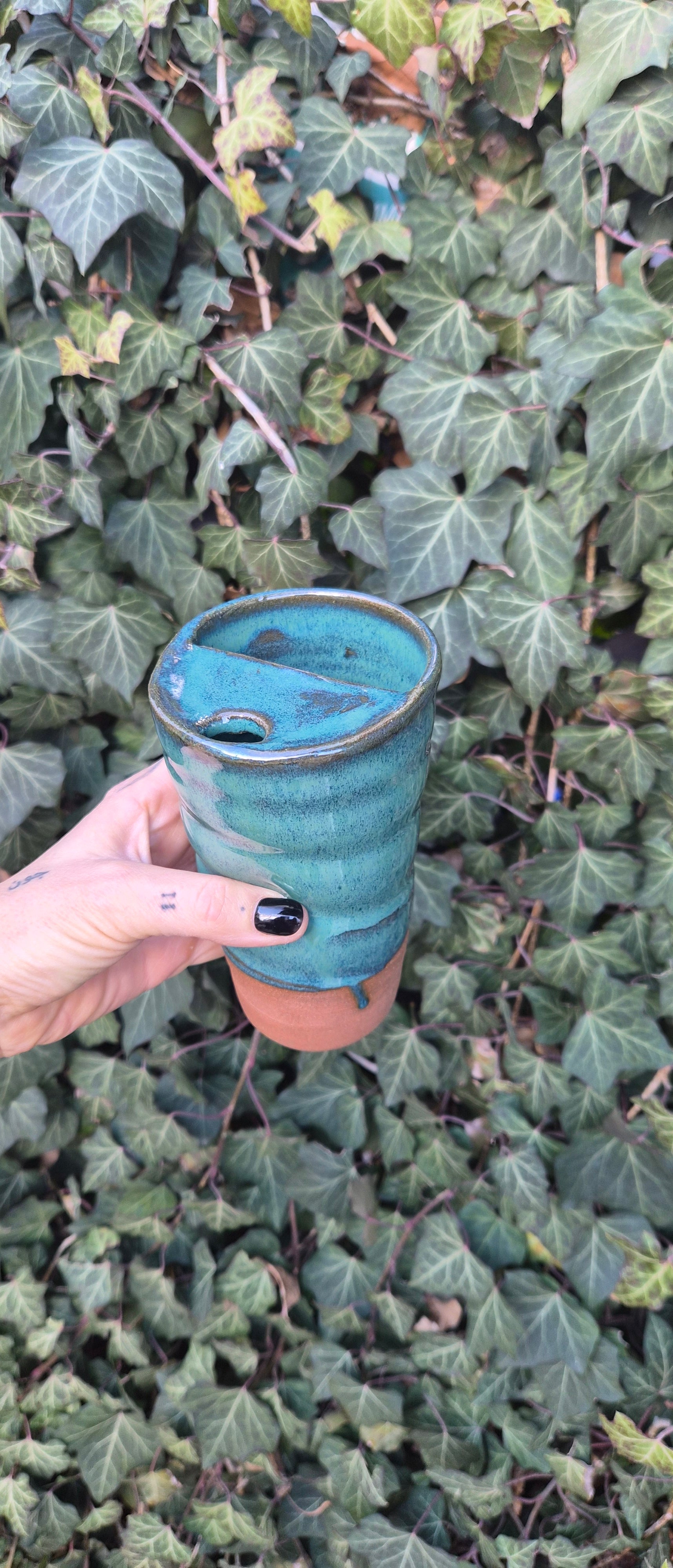 Hand thrown pottery made by Anna Marie here in London Ontario. Please note colours and markings vary because each mug is uniquely hand crafted. All mugs are dishwasher safe and fit in most standard car cupholders!